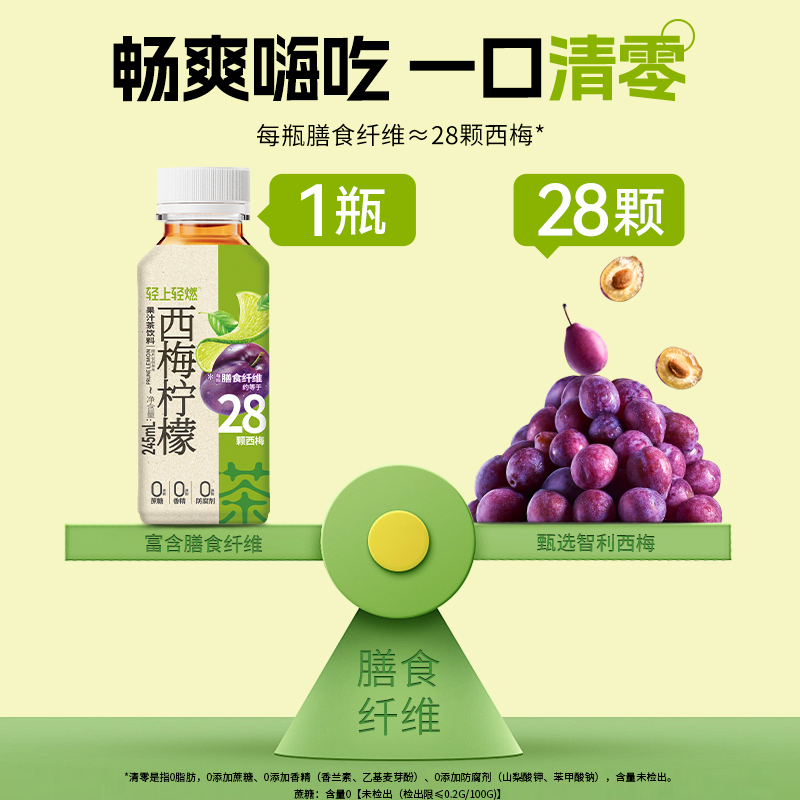 轻上西梅柠檬茶饮料0添加蔗糖含膳食纤维饮品果茶饮料整箱装
