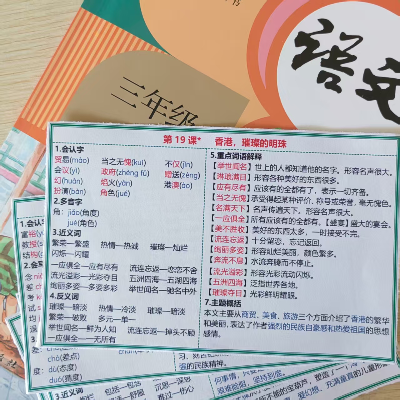 2025秋新版小学三年级上册神奇小纸条语文课课贴自粘胶生字组词贴