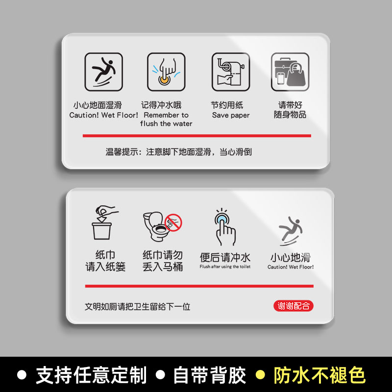 商场卫生间节约用纸废纸入篓便后请冲水禁止吸烟组合温馨提示贴洗手间请文明使用坐便器请勿蹲踏马桶标识牌贴