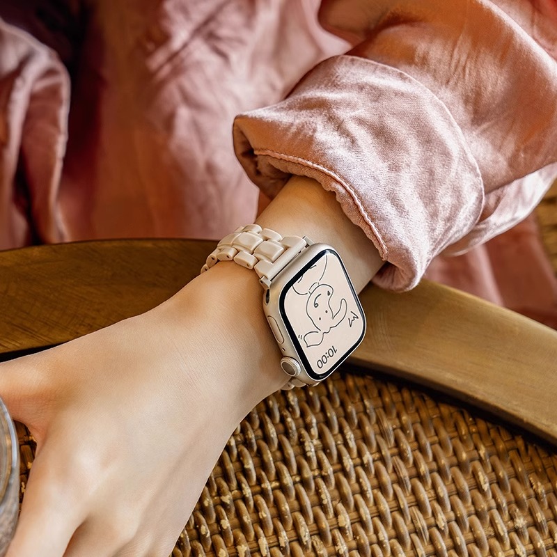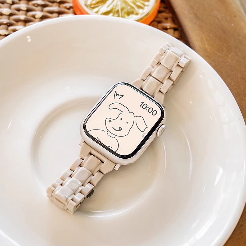 适用iwatch手表S10新款细腰三珠树脂S11表带苹果S9女生iwatch腕带SE夏天8时尚个性智能配件42mm运动5可爱创意