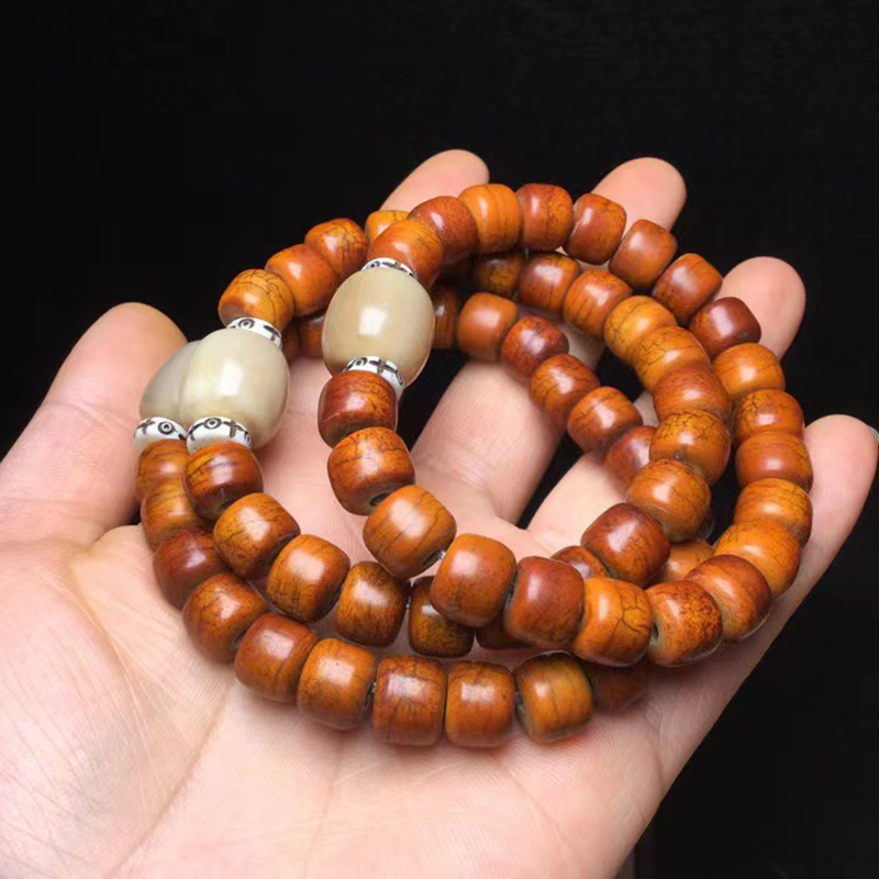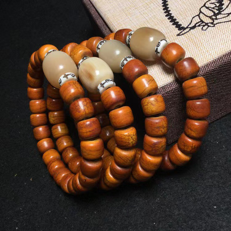 西藏天然牛骨手串批发做旧牦牛骨手串桶珠骨质佛珠