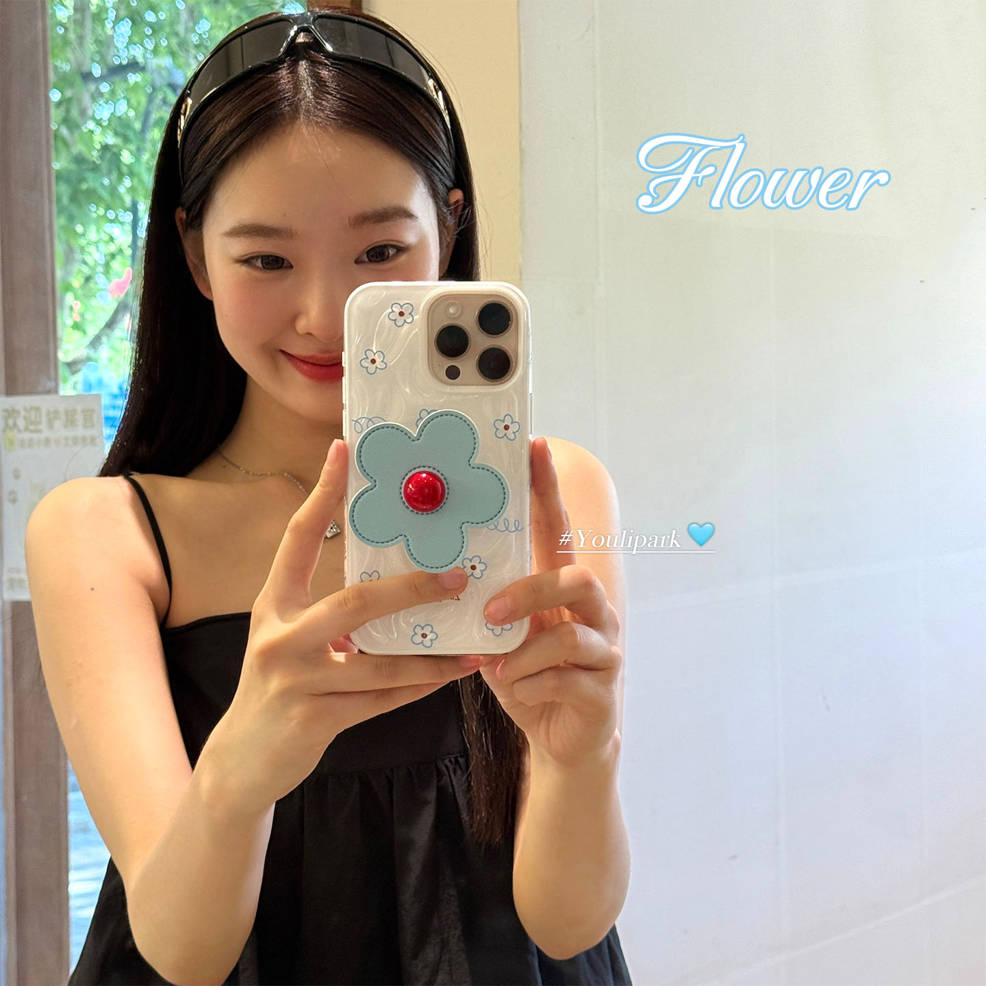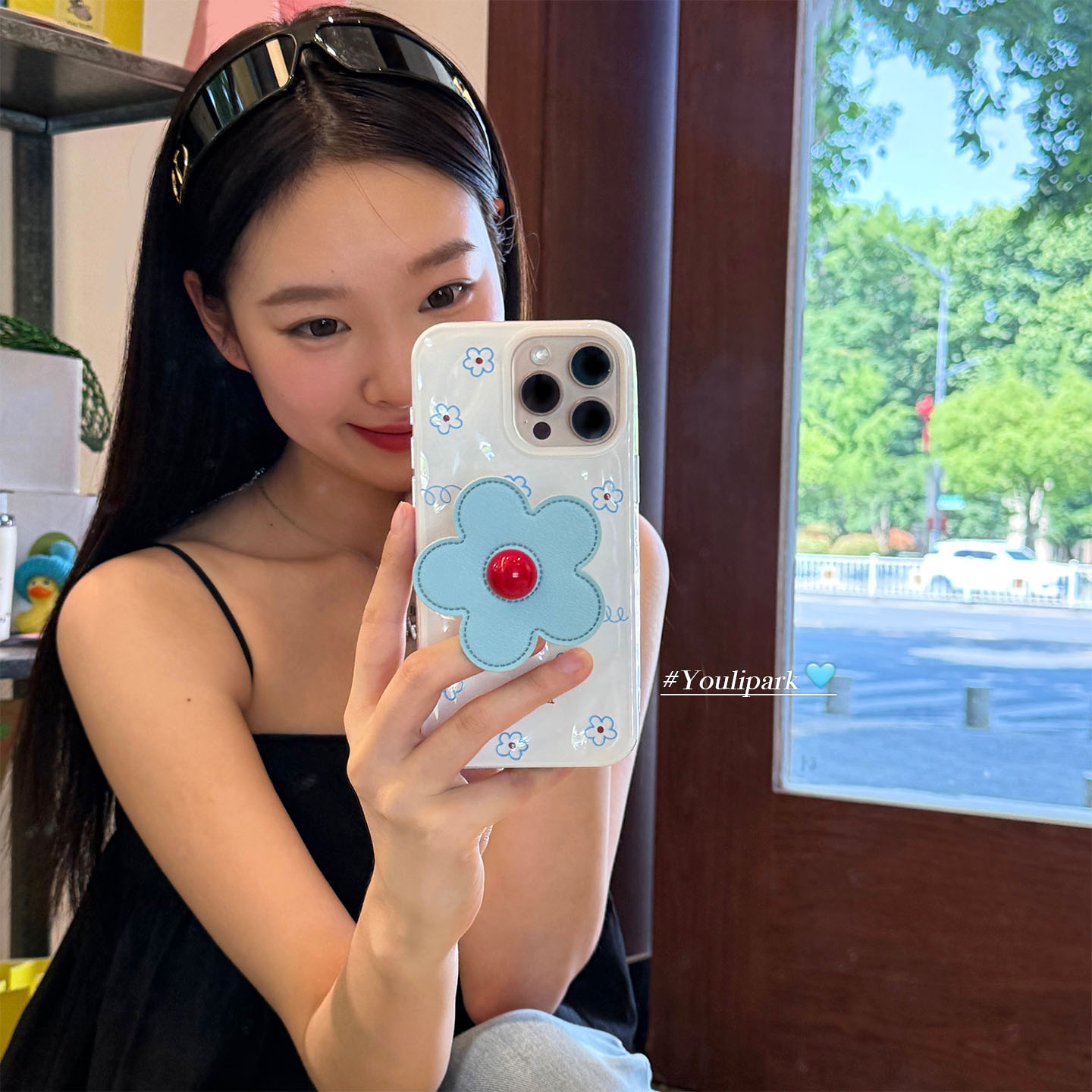 由里公园ins小众少女线条花朵皮质支架15适用16pro苹果16ProMax手机壳iPhone16全包14新款14Promax保护套13韩