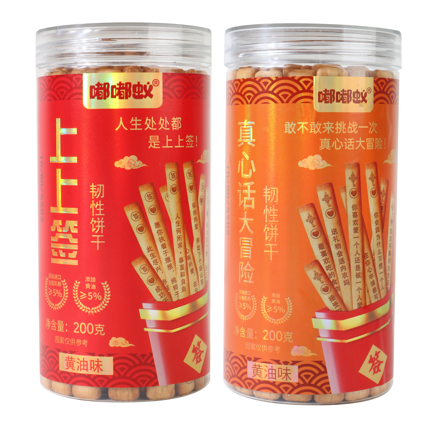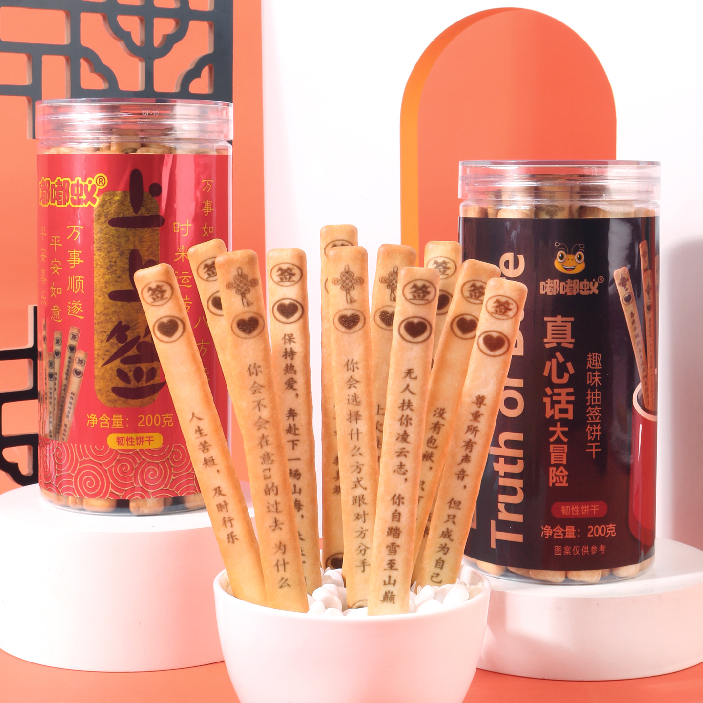 嘟嘟蚁创意好运上上签饼干黄油味真心话大冒险小零食罐装200g抽签