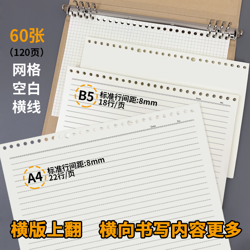 b5硬壳上翻活页a4替芯横线可拆卸网格空白纸方格思维导图笔记本子