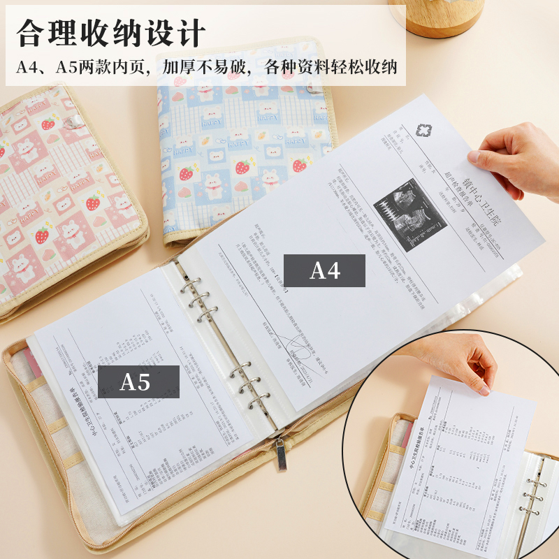 A5孕检收纳册拉链包报告单马宝宝怀孕活页检查单A4孕妇孕妈妈孕期单子产检手册资料记录便携档案册证件大容量