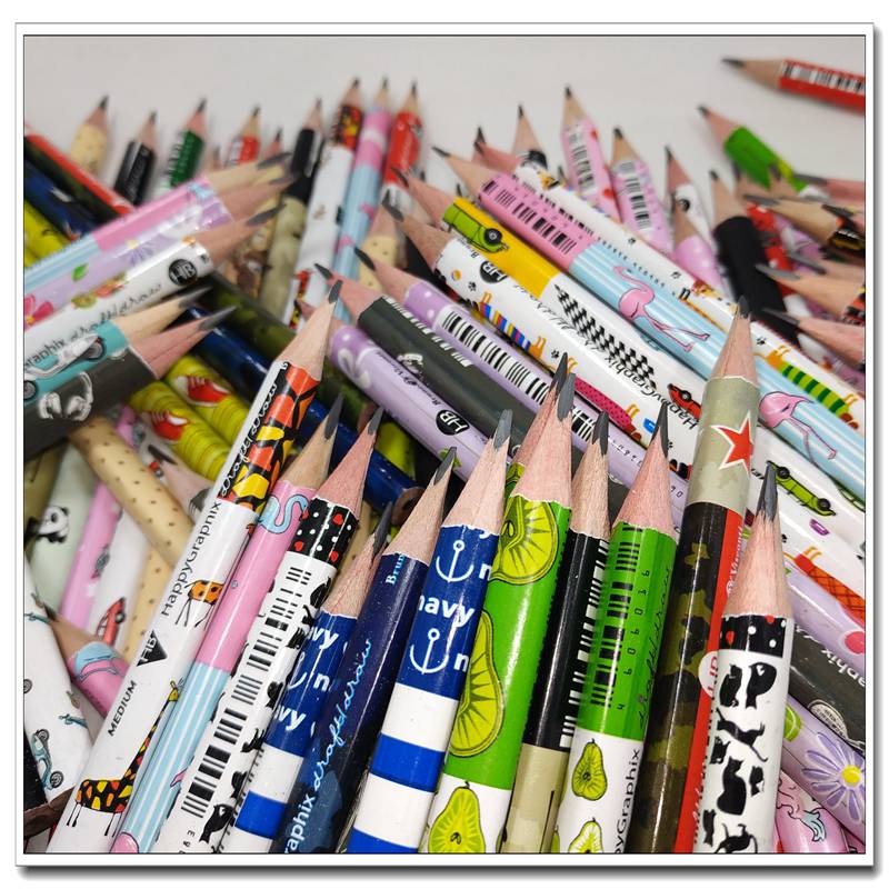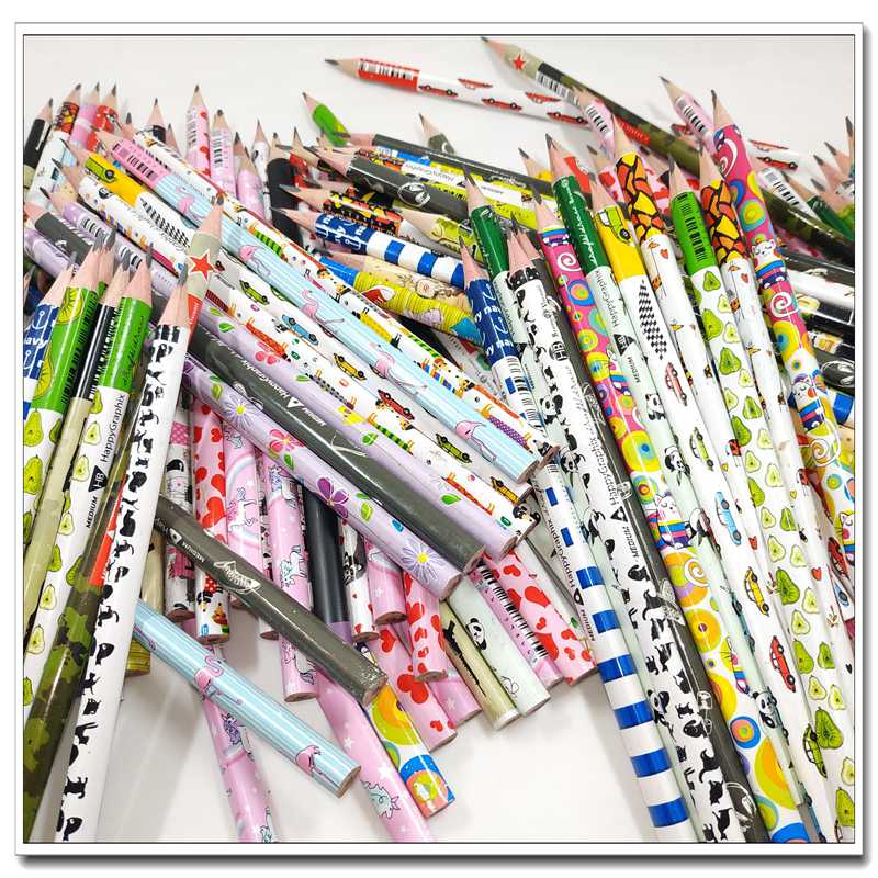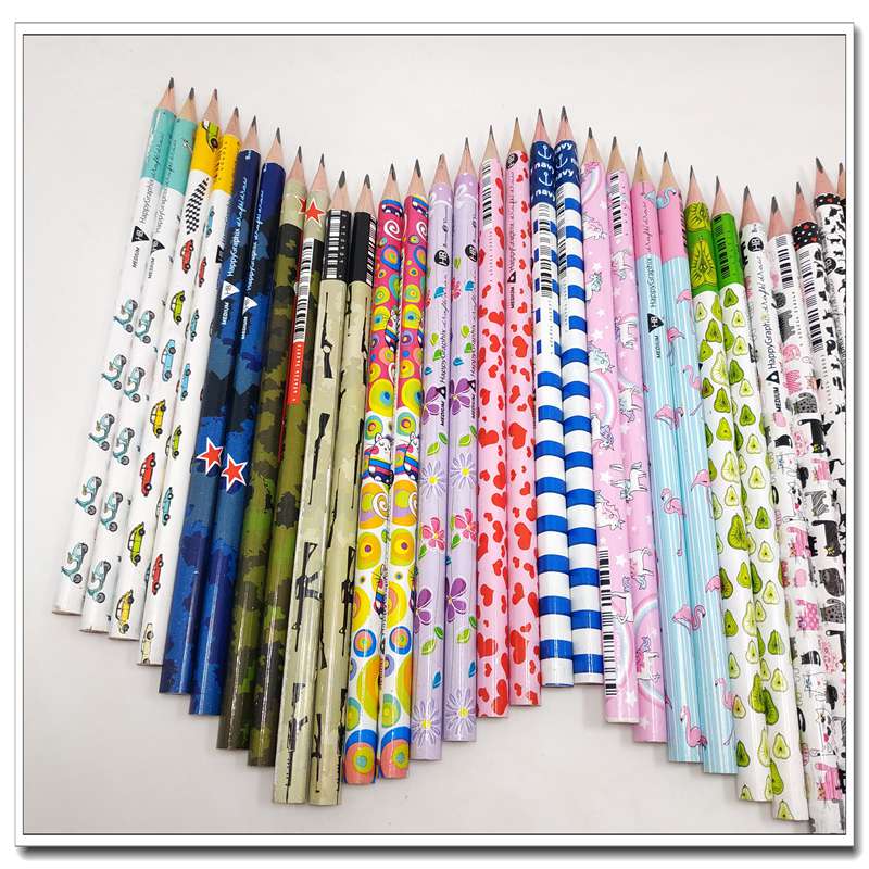 外贸日本原单HB中等硬度学生铅笔卡通动物三角杆环保无铅漆热转印