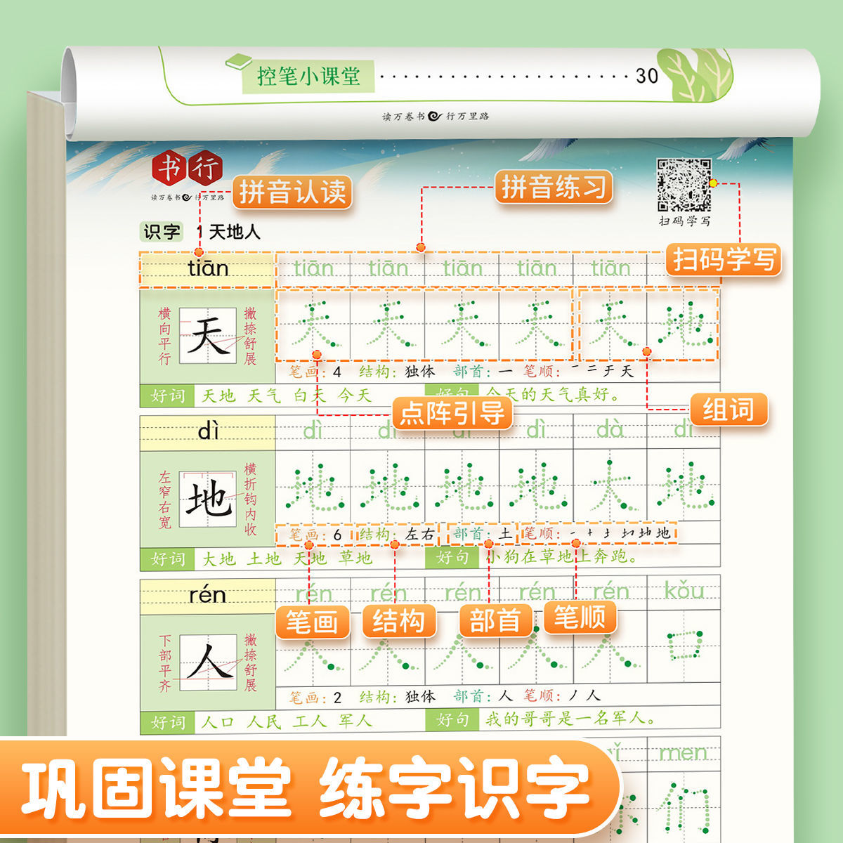 书行2025一年级二年级字帖练字帖小学生专用每日30字三四五六上册下册一练控笔训练儿童人教版语文同步练习练字本好句好词点阵汉字