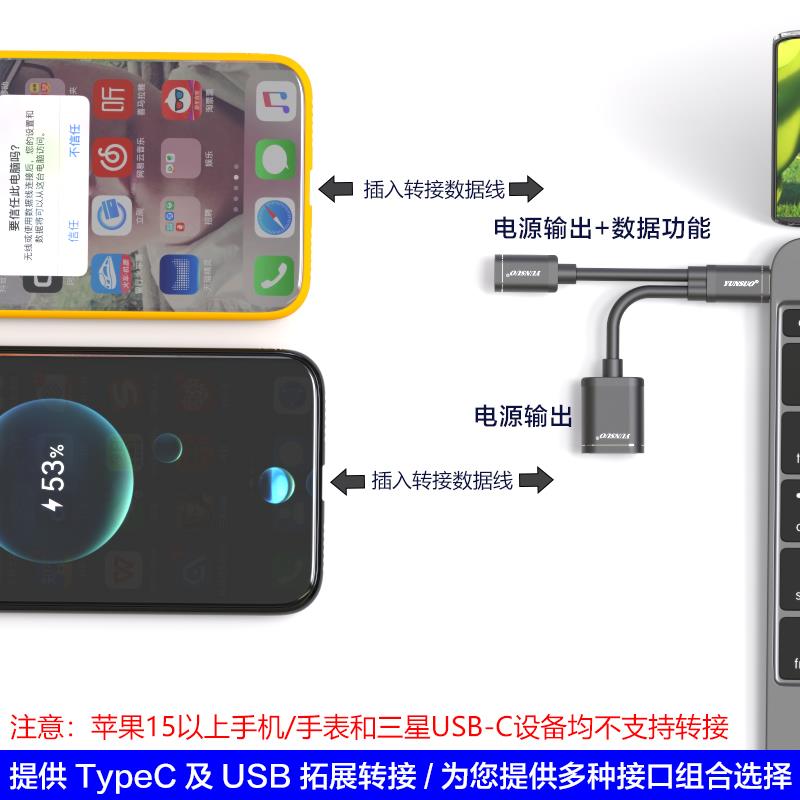 TypeCUSB充电与数据转接延长拓展一分二公母线适用汽车车机电脑等