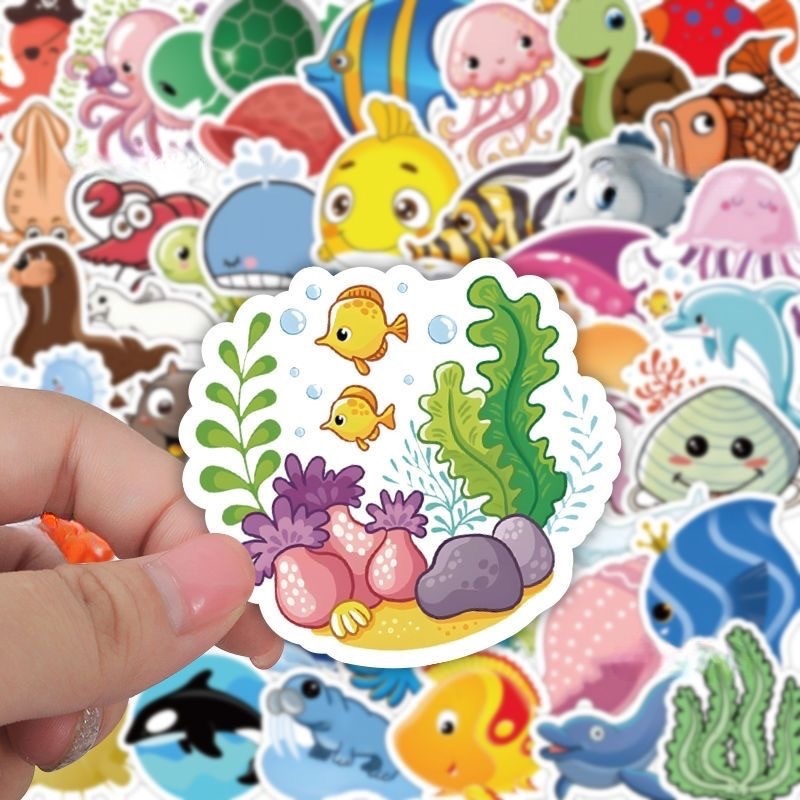 1500张海底世界贴纸海洋动物鲨鱼鲸卡通装饰儿童学生作业奖励礼物