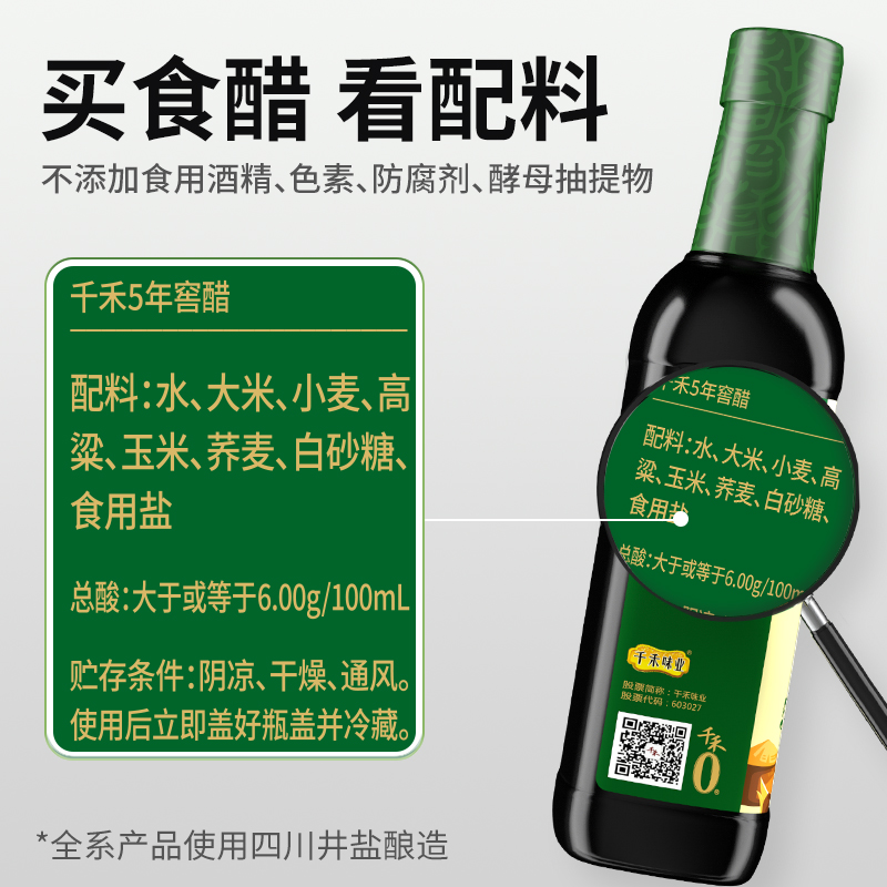 千禾5年窖醋500ml/瓶 老陈醋凉拌饺子食用炒菜蘸食家用
