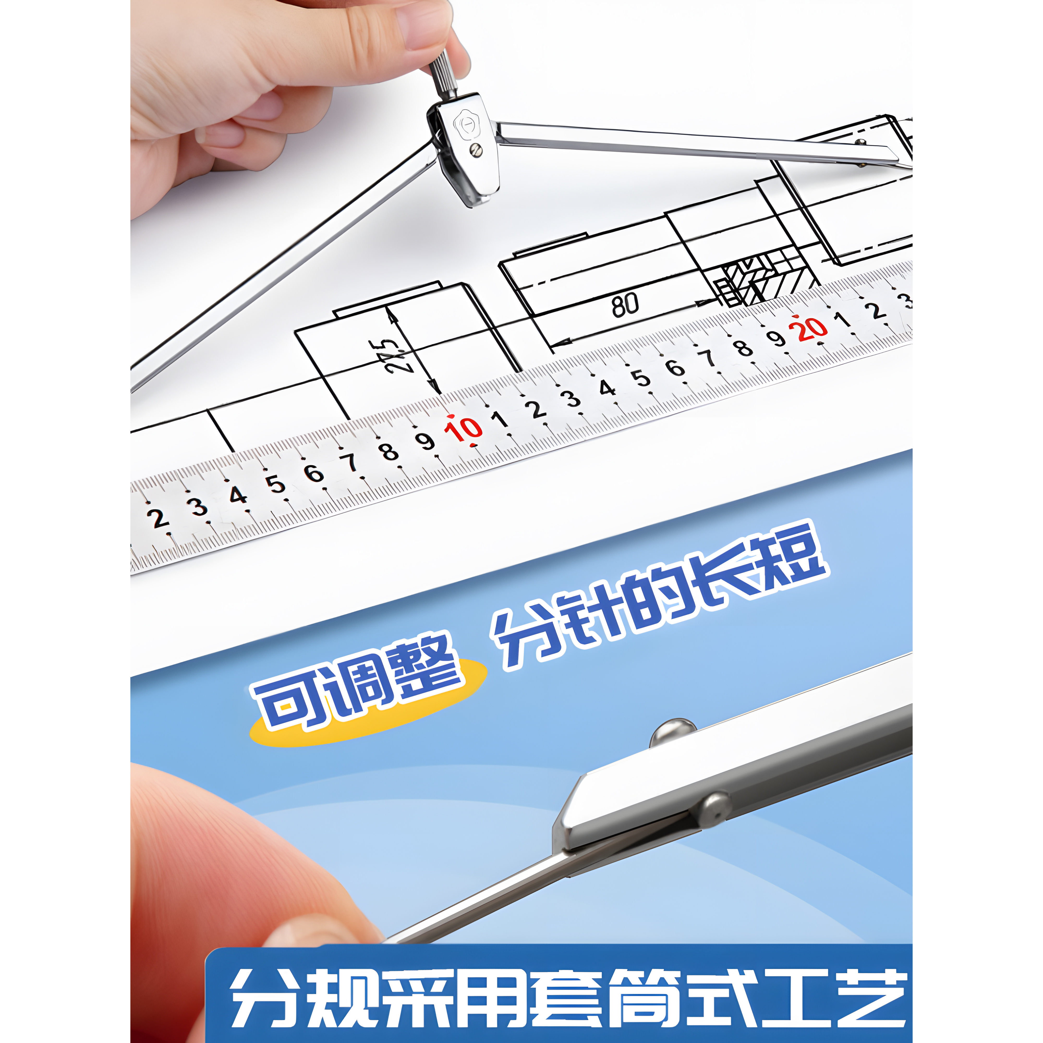 英雄机械制图工具套装土木工程建筑cad绘图仪器大学生专用画图作图工具包直尺三角板专业园圆规分规尺规套装