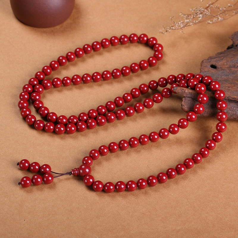 天然原矿紫金沙高纯度晶体朱砂手链108颗佛珠手串紫金砂辰砂项链