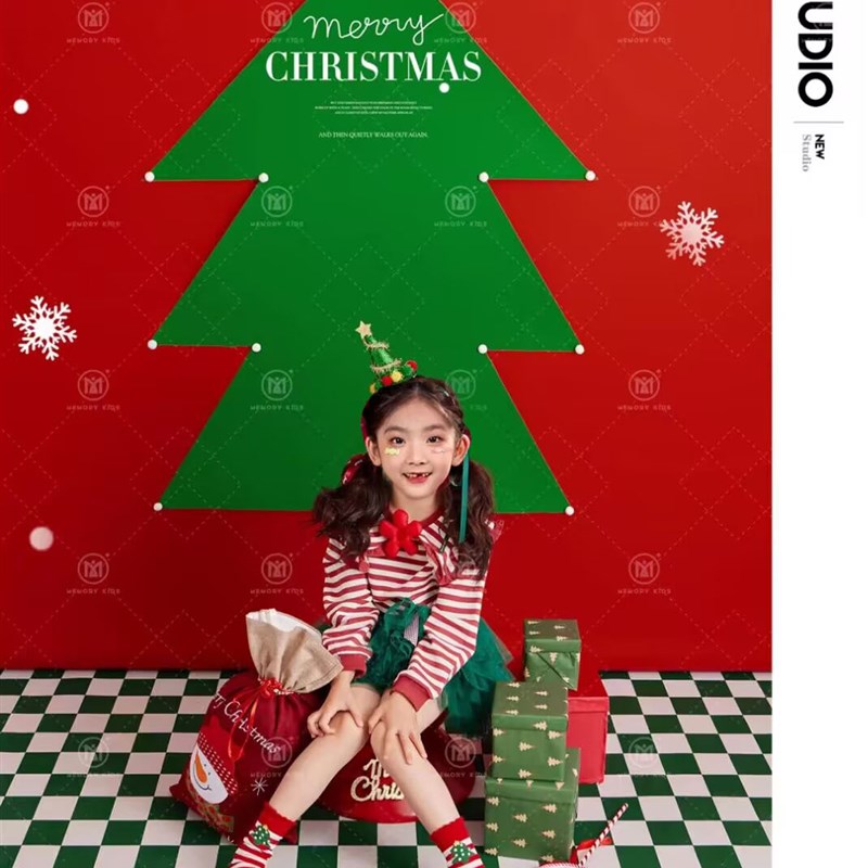 照相馆儿童写真摄影道具耶诞树背景布拍耶诞节照红色挂布装饰地毯