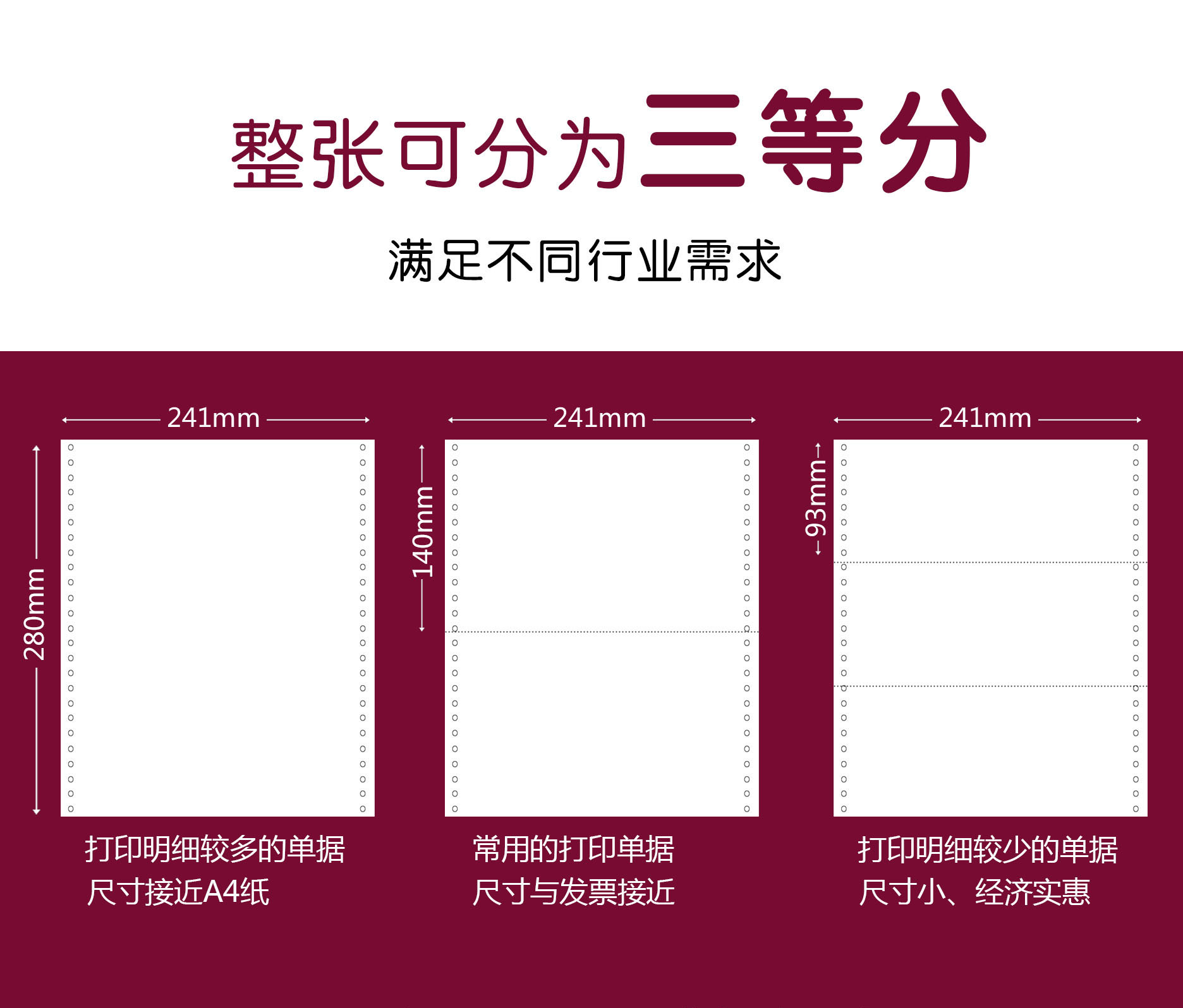 3联2等分9孔针式电脑打印纸三等分不撕边双层发货发票出入库单