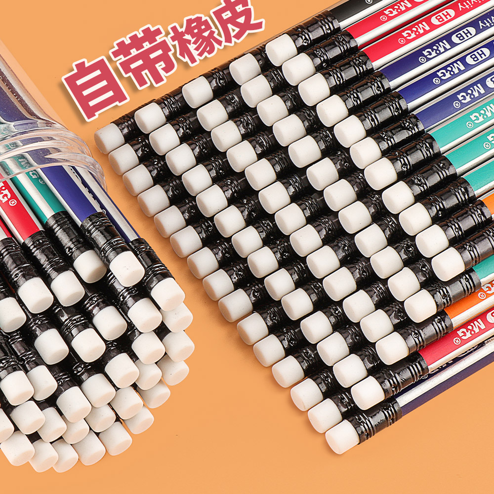 100支桶装晨光铅笔hb小学生专用正品2比考试2b儿童幼儿园初学者一二年级六角三角杆带橡皮套装文具用品