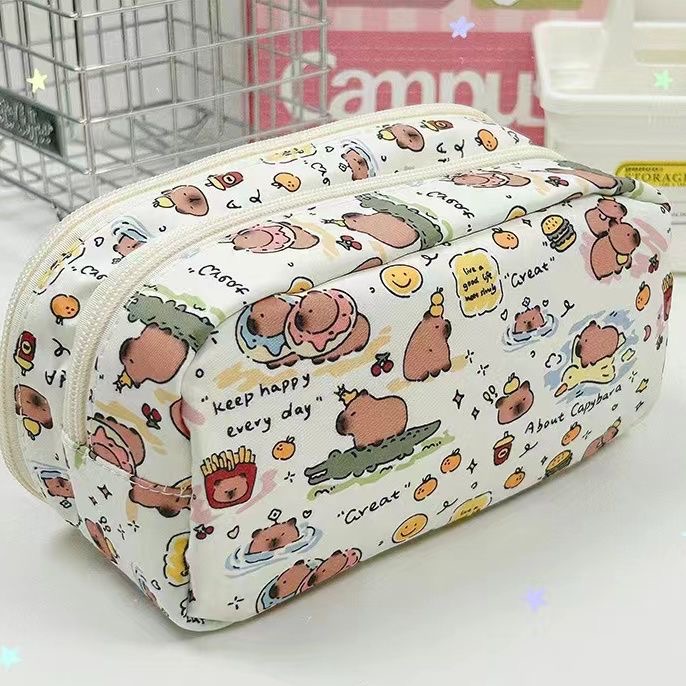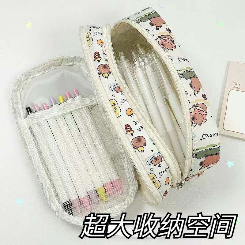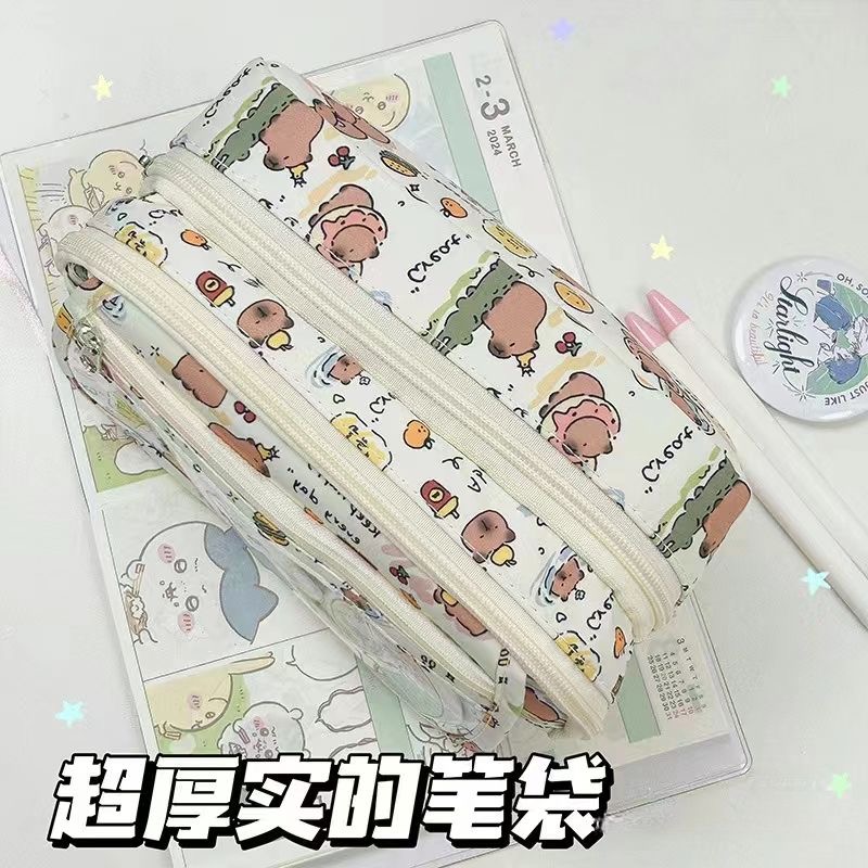 卡皮巴拉新款痛包笔袋初高中学生大容量卡通吧唧吃谷人文具收纳袋