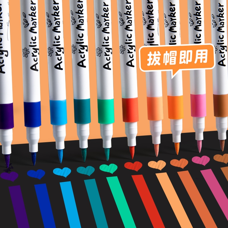 直液式丙烯马克笔软头美术专用画画笔双头儿童安全无毒可水洗学生水彩笔白DIY涂鸦笔丙烯笔幼儿园24色防水