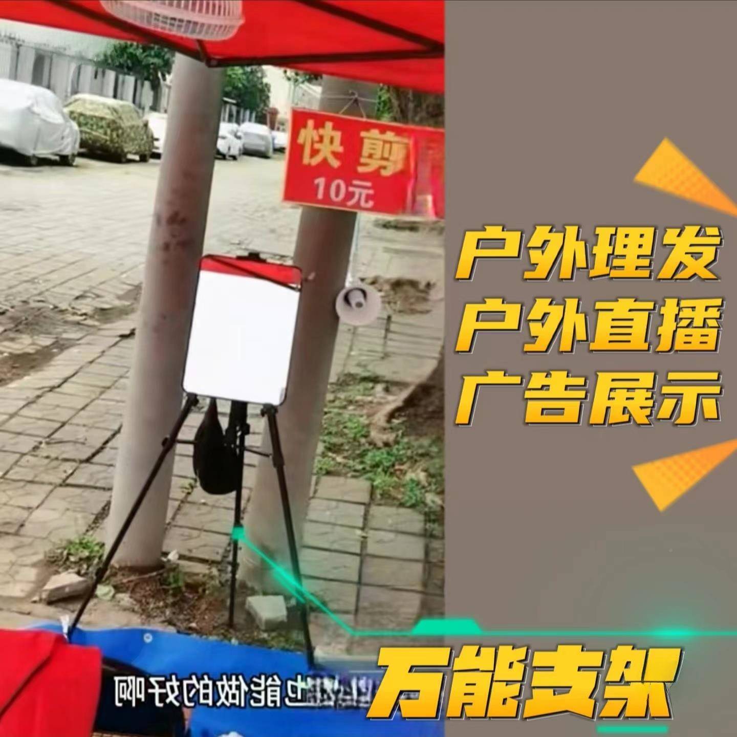 降户外摆774摊理发可镜子带支架三角能放镜画升支撑快剪发工具装