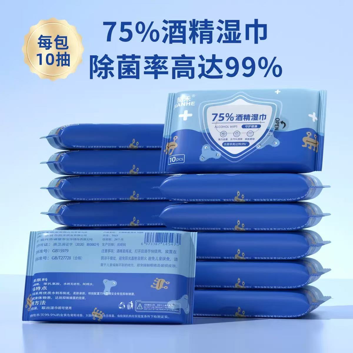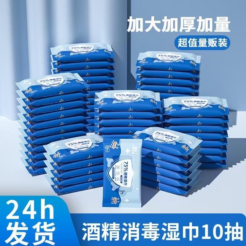 酒精湿巾75%度消毒10片装一次性学生卫生便携式杀菌便携装随身