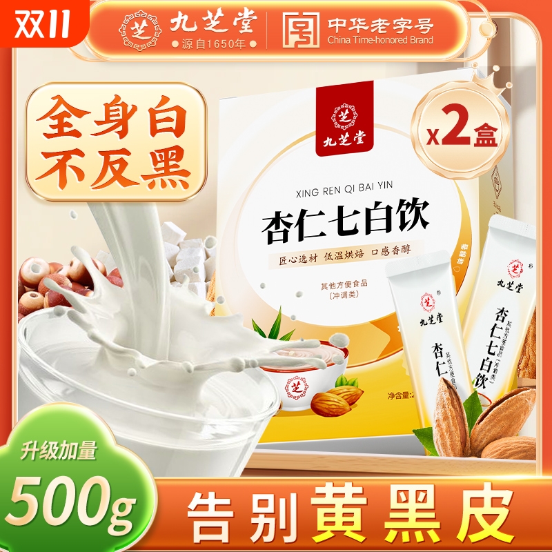 杏仁七白饮粉营养早餐冲泡冲饮品以白非美白纯杏仁粉山药茯苓百合