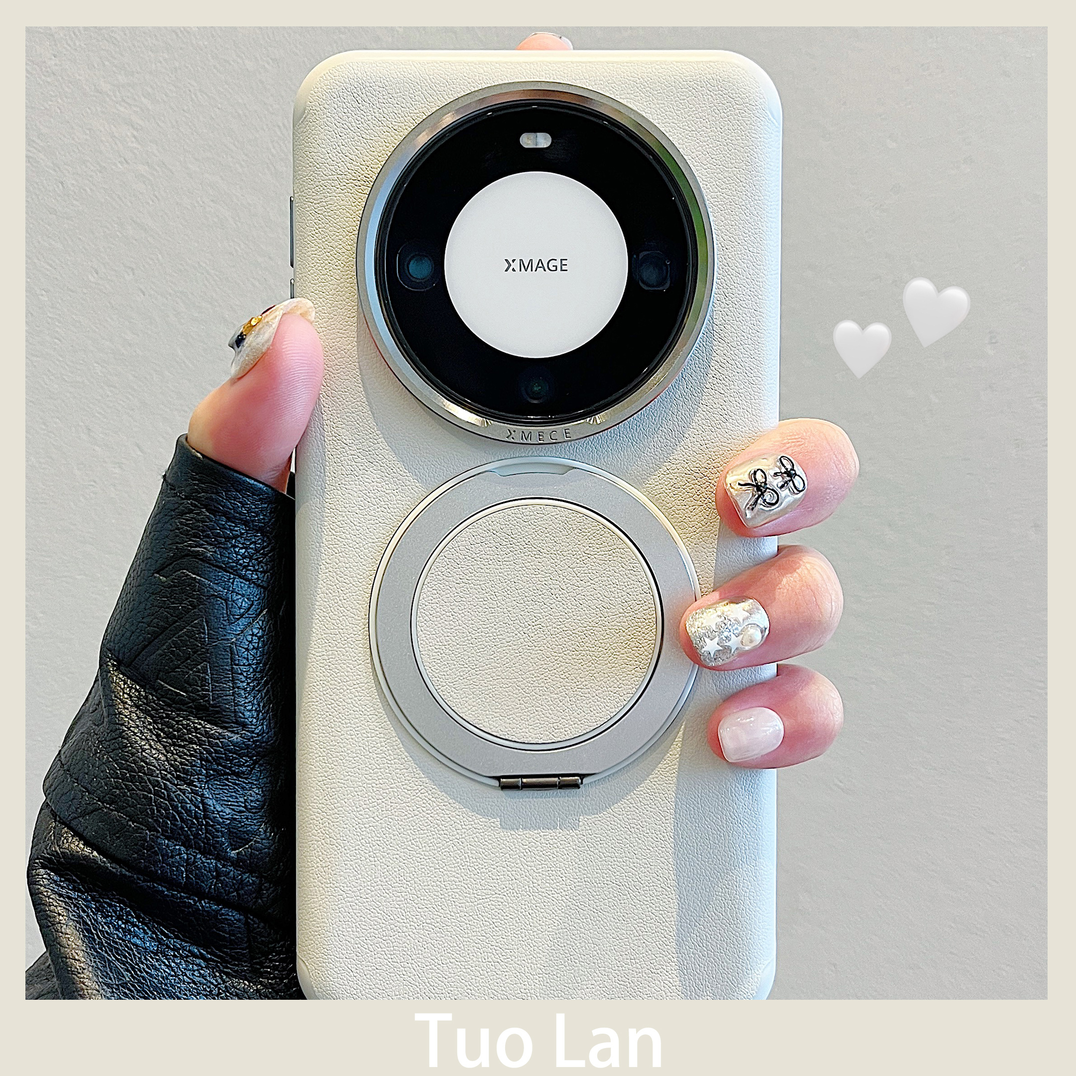 拓岚 新款素皮支点壳适用华为mate60pro+手机壳情侣高级感皮纹五金电镀磁吸360度旋转支架pura70pro防摔保护