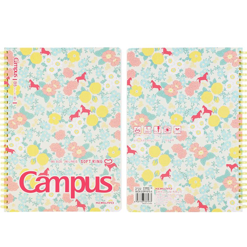 国誉加藤木笔记本子软线圈加厚campus限定记事本ins风花卉学生用
