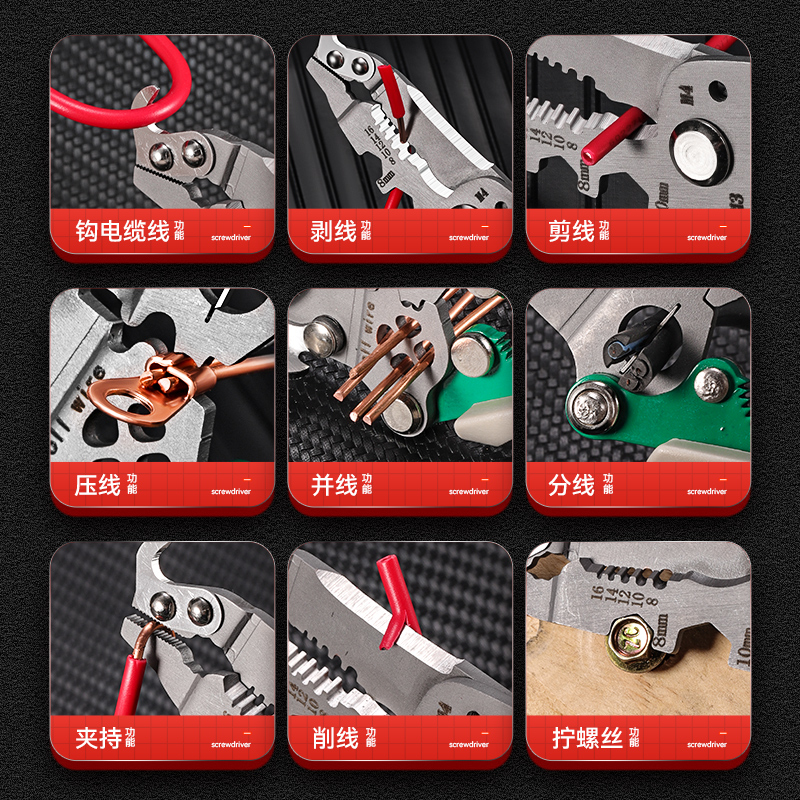 电工专用18合1剥线钳 多种功能折叠收纳剪线并线拧螺丝折弯工具钳