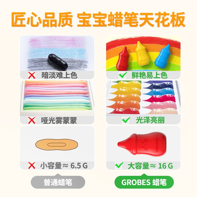 GROBES早教奶瓶蜡笔不脏手安全可水洗宝宝不粘手幼儿园油画棒