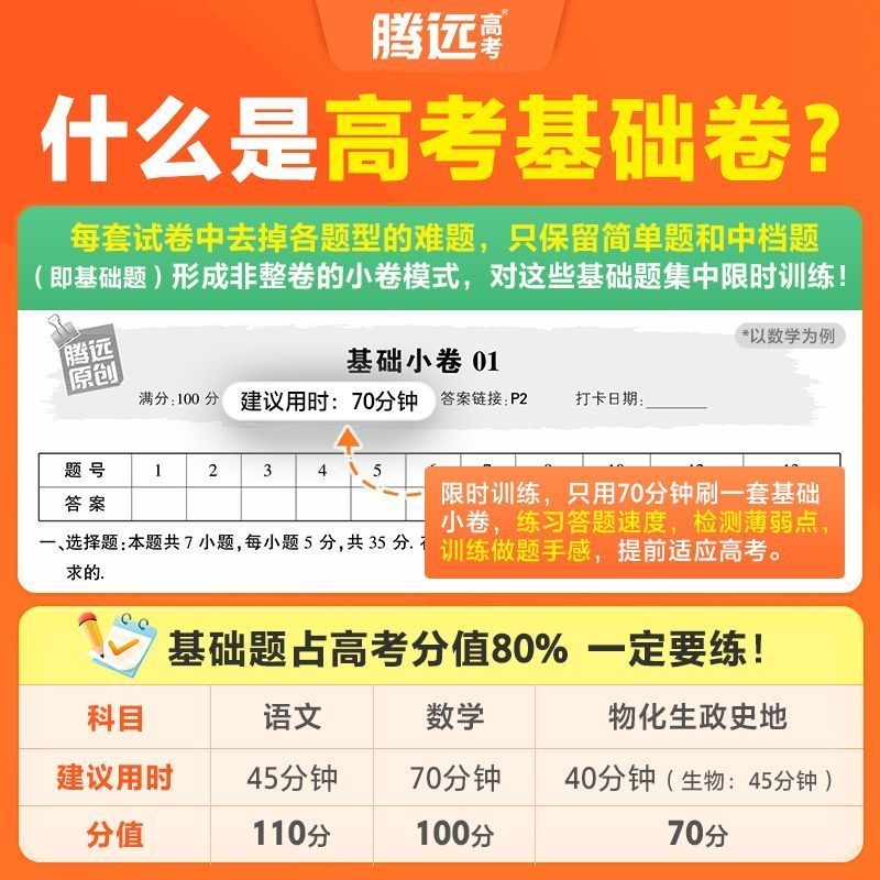2025新版腾远基础卷高考模拟卷数学100分政治历史40分钟物理化学生物地理语文110分基础试题新教材新高考万唯高考卷总复习资料通用