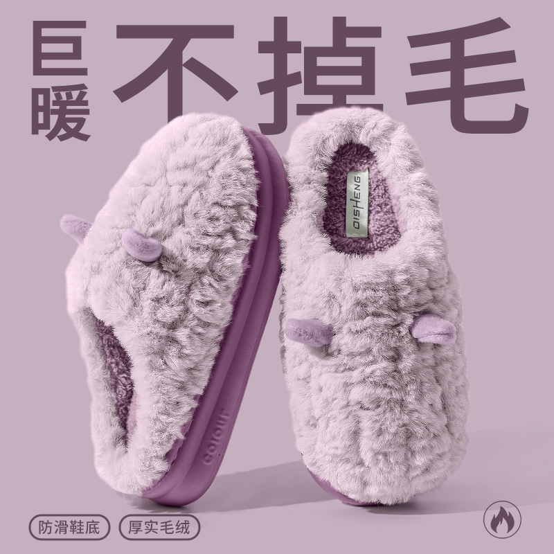 踩屎感棉拖鞋女款秋冬季室内居家居厚底情侣可爱毛绒棉拖男士冬天