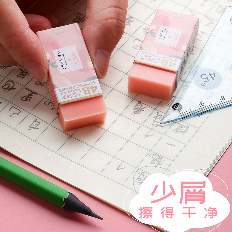 晨光橡皮擦4b乐桃派对小学生专用少屑像皮擦不留痕软象檫hb超干净无毒无屑不掉碎屑2比儿童可爱的创意卡通6b
