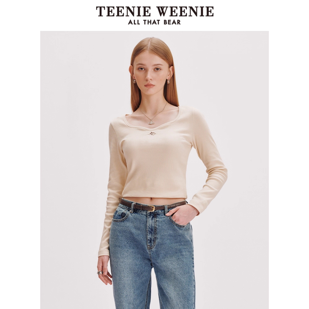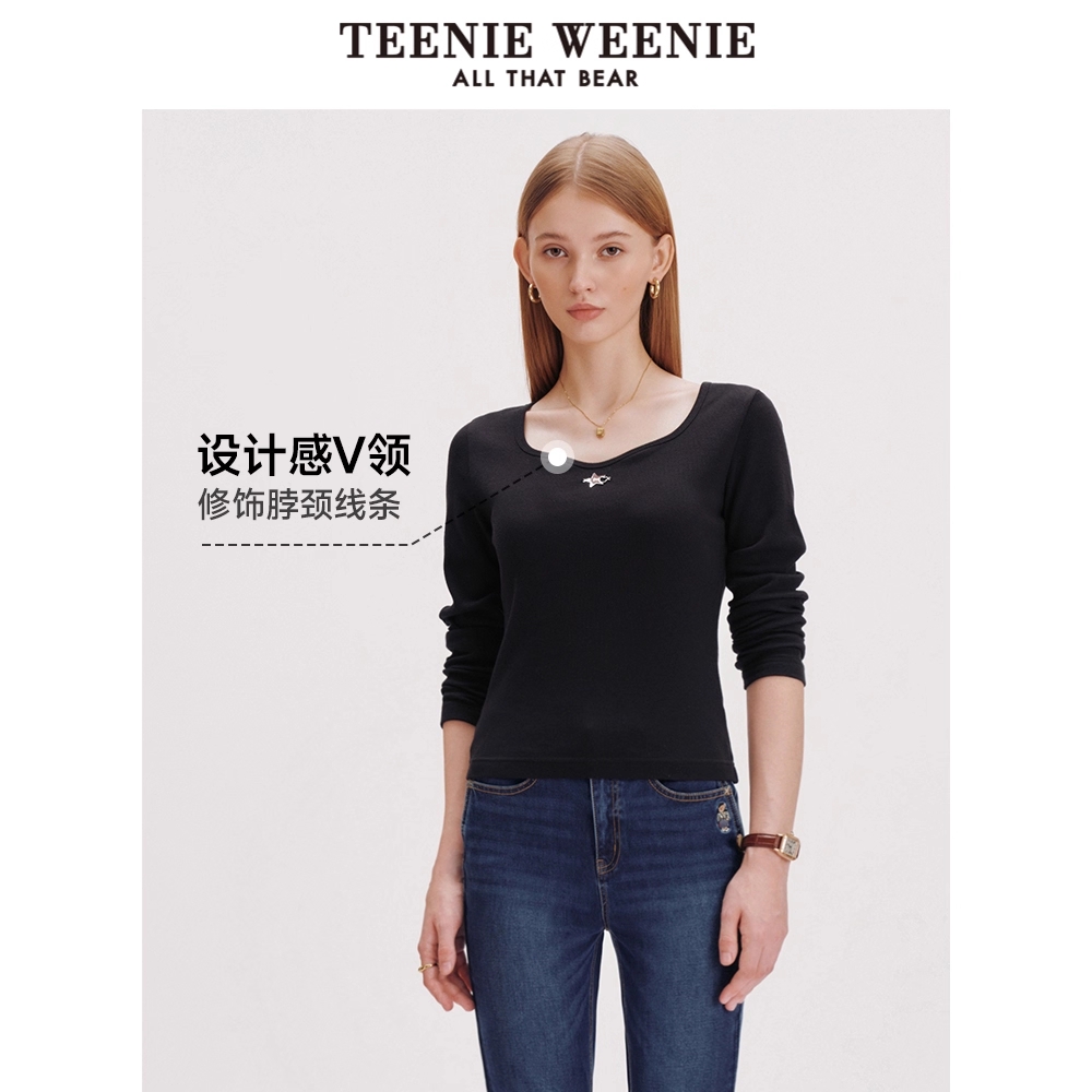TeenieWeenie小熊奥莱女装T恤女冬季修身基础V字下摆甜酷长袖上衣