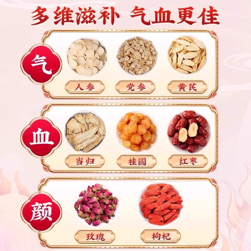 黄芪当归党参红枣桂圆枸杞茶补气血调理女人气血养生茶养血美容