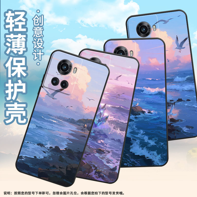 适用一加7手机壳KB2001时尚13S防摔一加9R磨砂壳Oneplus10R海岸线风景1+13T耐磨一加9RT商务PGZ110保护套
