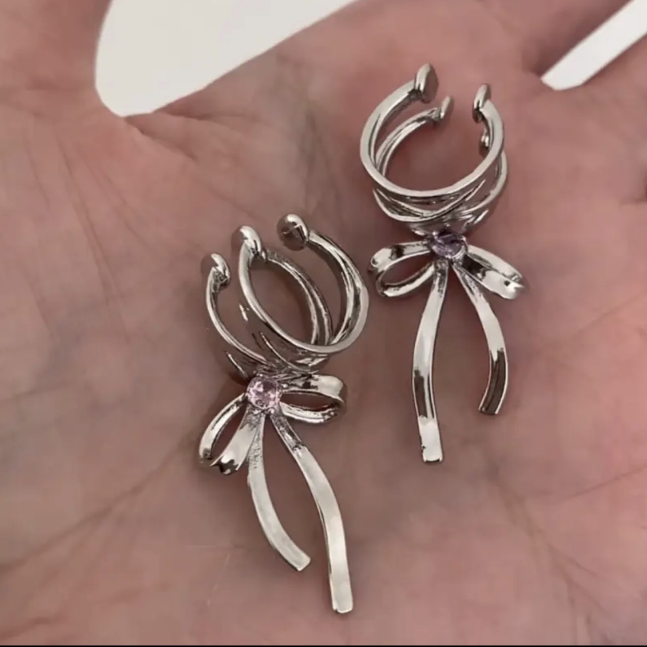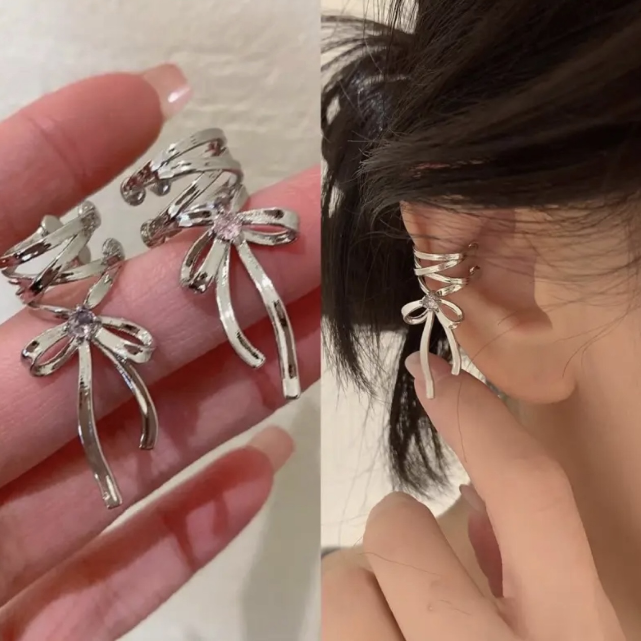 【店铺热销】交叉镂空丝带耳夹耳骨夹女小众设计清冷感百搭蝴蝶结