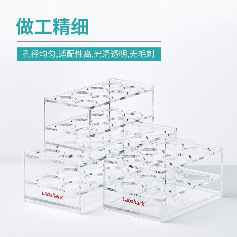 Labshark有机玻璃离心管架多功能塑料试管架EP管PCR管架子5ml10ml15ml50ml100ml毫升多功能架8孔10孔18孔24孔