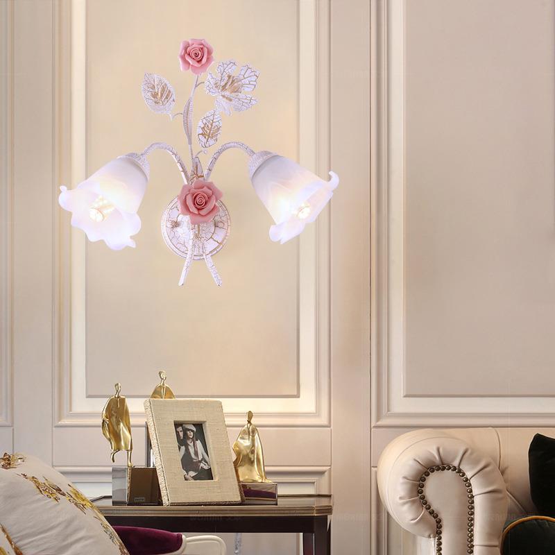 佳苑韩式田园壁灯铁艺床头灯花草镜前灯双头单头壁灯过道房间壁灯