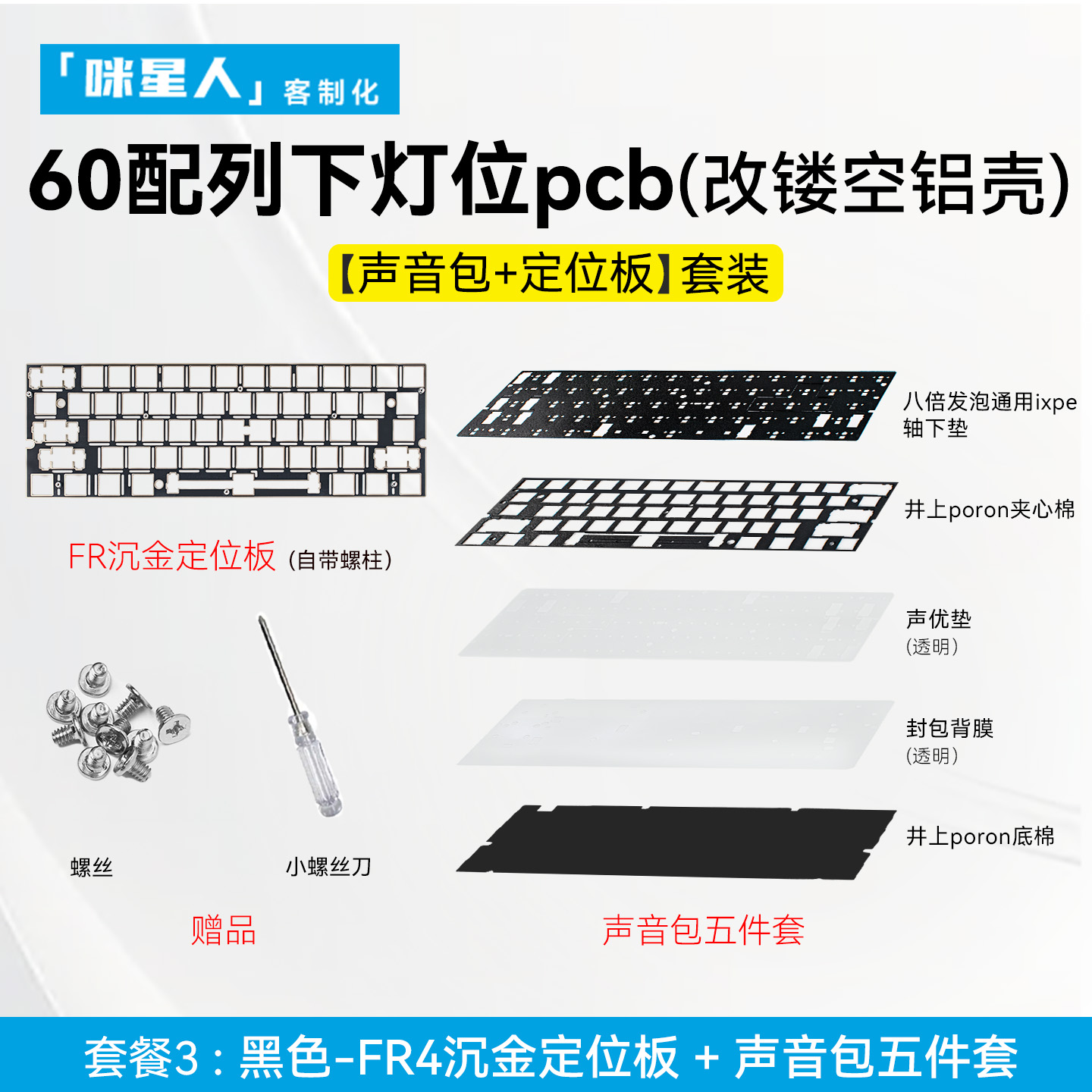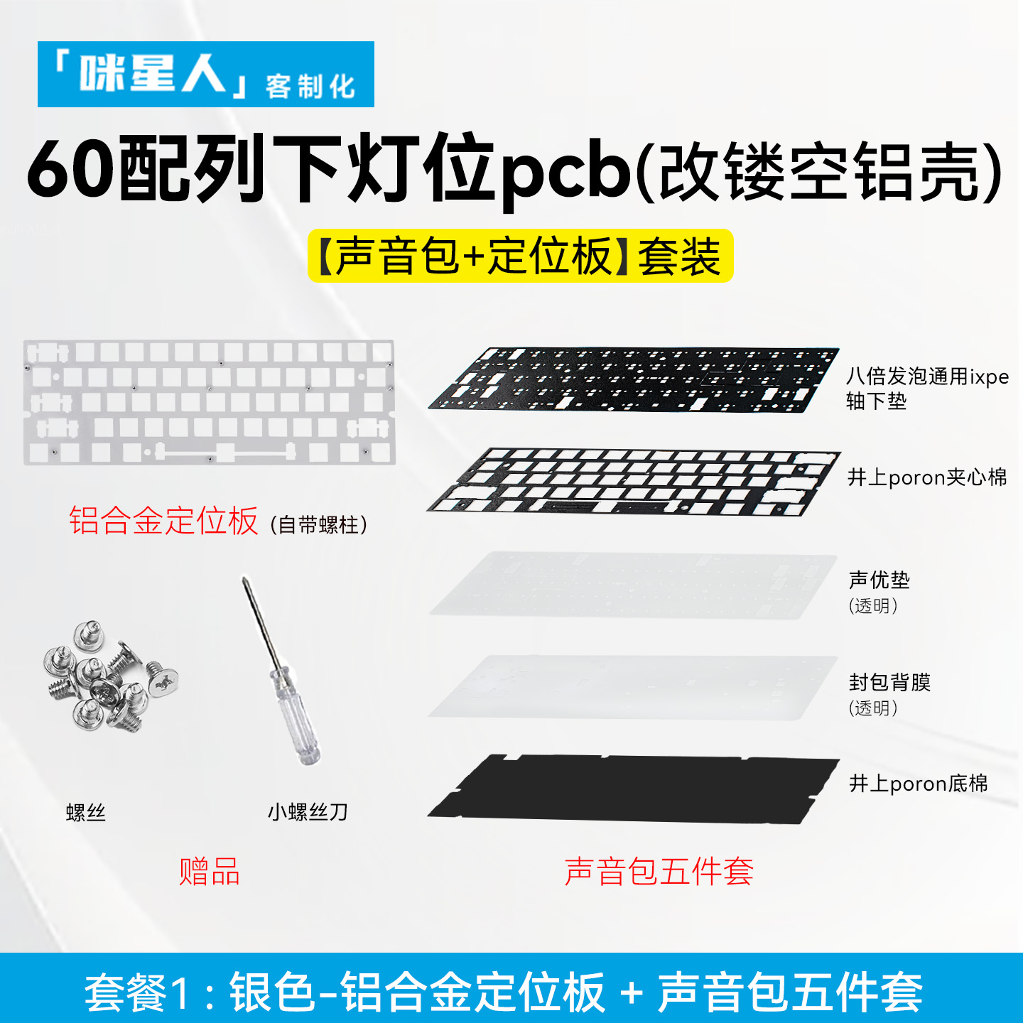 声音包+定位板|60配列下灯位pcb客制化满改镂空铝壳碳纤维/沉金