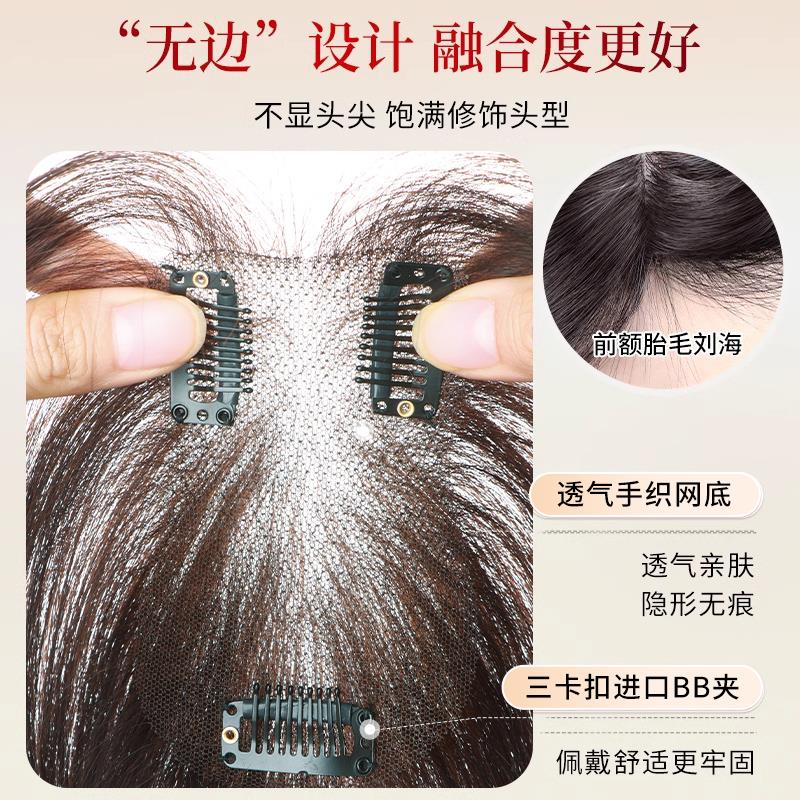 云轻纱假发片女头顶增发量蓬松真发高颅顶遮白发轻薄无痕补发刘海