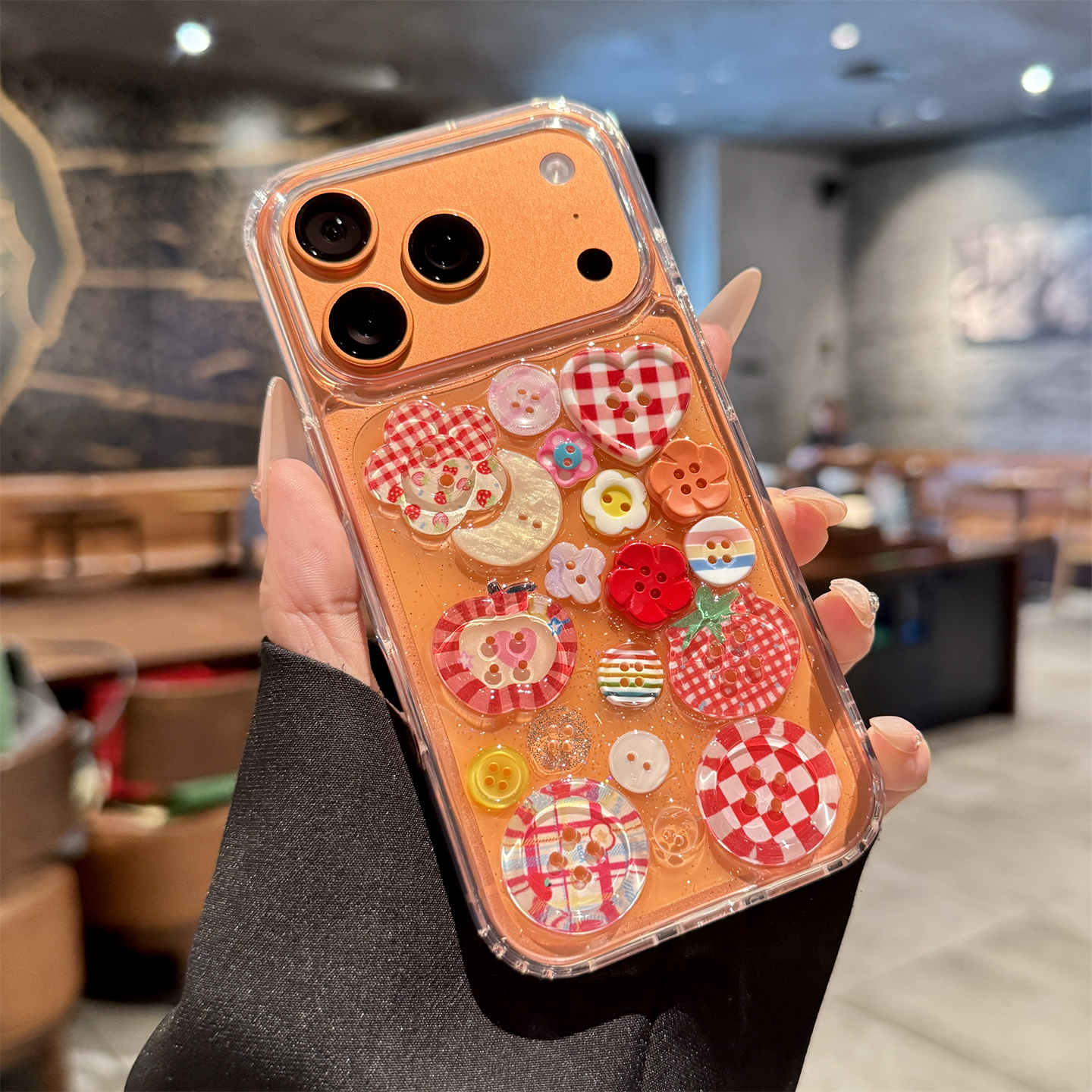 适用苹果17promax手机壳格纹纽扣iPhone17新款17pro高级感16透明15全包镜头14防摔16pro女款超薄好看硅胶pm的