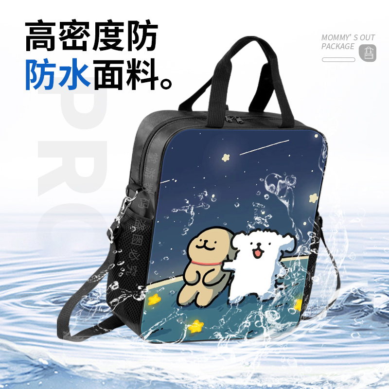 可爱卡通美术袋兴趣班补课包马尔济斯线条小狗初中生补习袋儿童手提包帆布袋小学生防水斜挎包双肩书包三用包