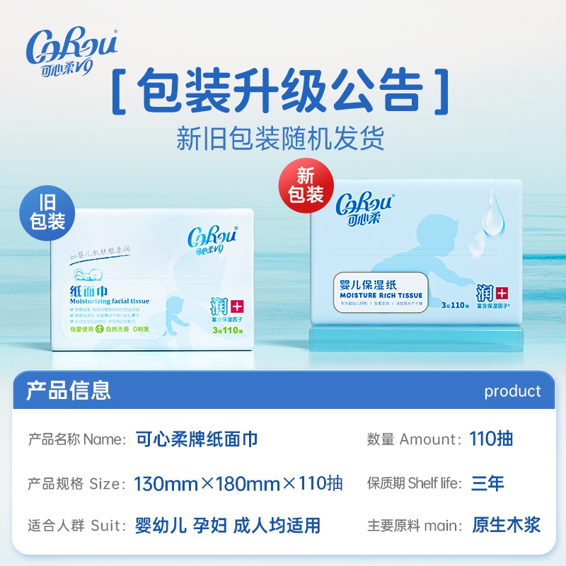 可心柔婴儿纸巾宝宝专用保湿乳霜纸云柔巾保湿纸110抽S码母婴清洁