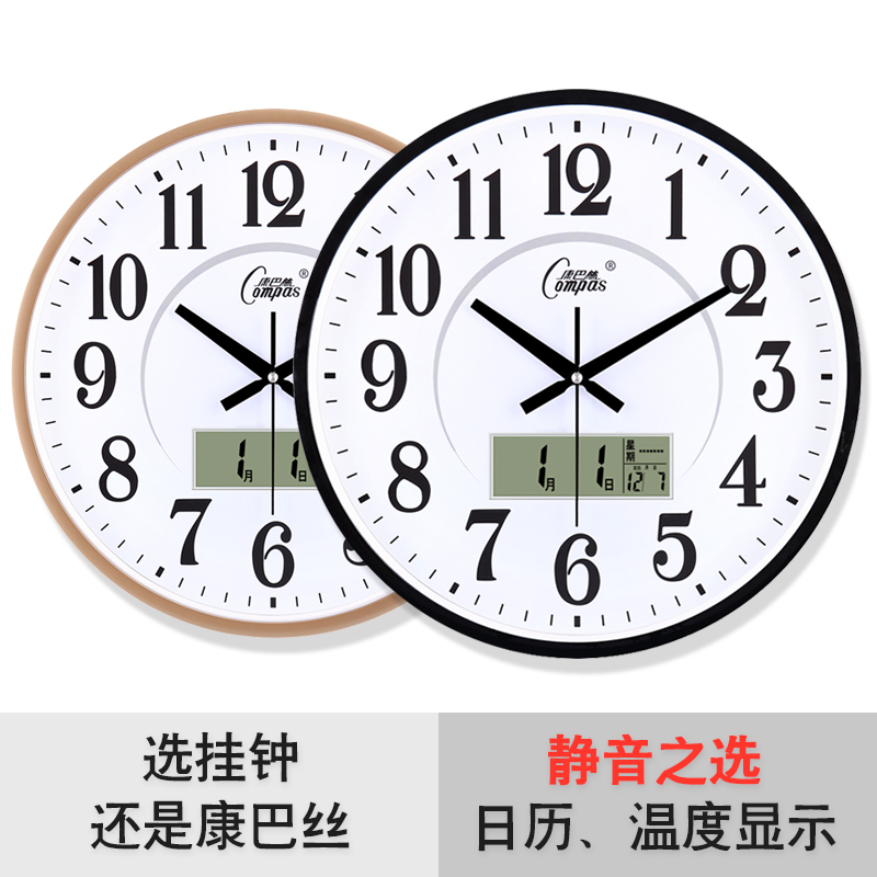 康巴丝挂钟表客厅简约时尚挂表卧室静音石英钟现代创意日历流行表