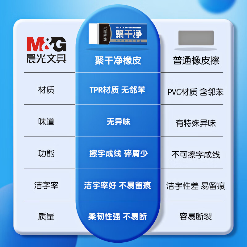 晨光橡皮擦小学生专用聚干净少屑擦得干净不易留痕擦字成线铅笔像皮儿童安全无异味象皮美术专用橡皮