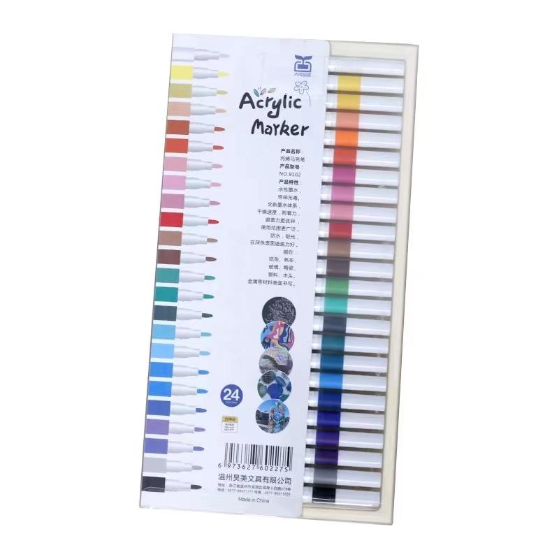丙烯马克笔24色学生美术专用幼儿园diy防水不透纸丙乙烯绘画彩笔
