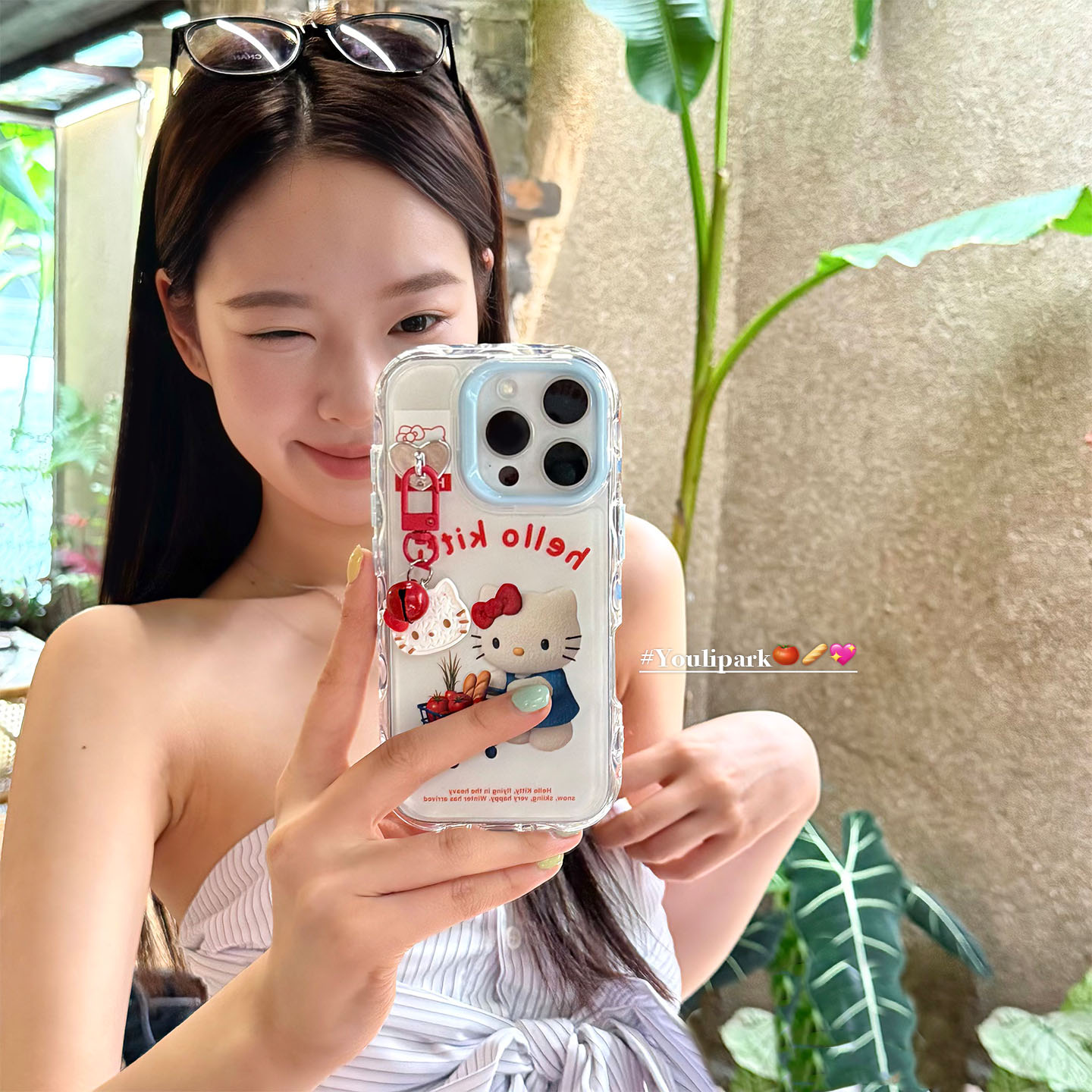 由里公园ins可爱少女趣味购物猫咪挂件15适用16pro苹果16ProMax手机壳iPhone16全包14新款14Promax保护套13韩