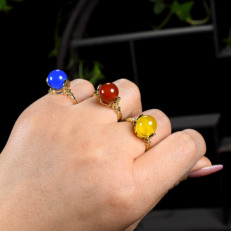 时尚玛瑙玉髓活口戒指红黄蓝传运珠指环情侣学生少女送礼物多规格