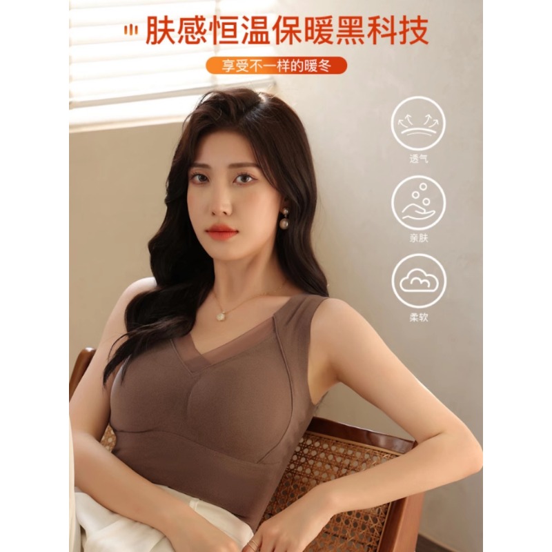 石墨烯保暖背心女冬季加绒加厚发热德绒带胸垫一体固定杯贴身内衣