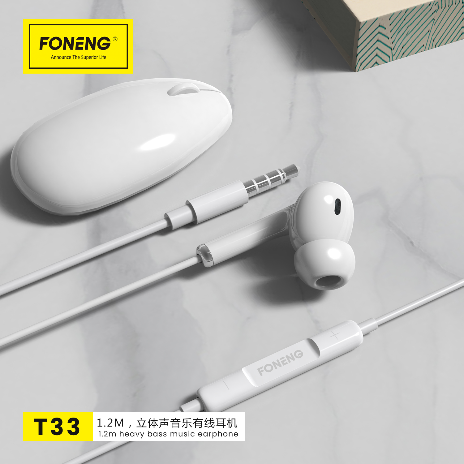 Foneng蜂能白色直插式圆孔软耳有线入耳式耳机带麦可调加减音耳机