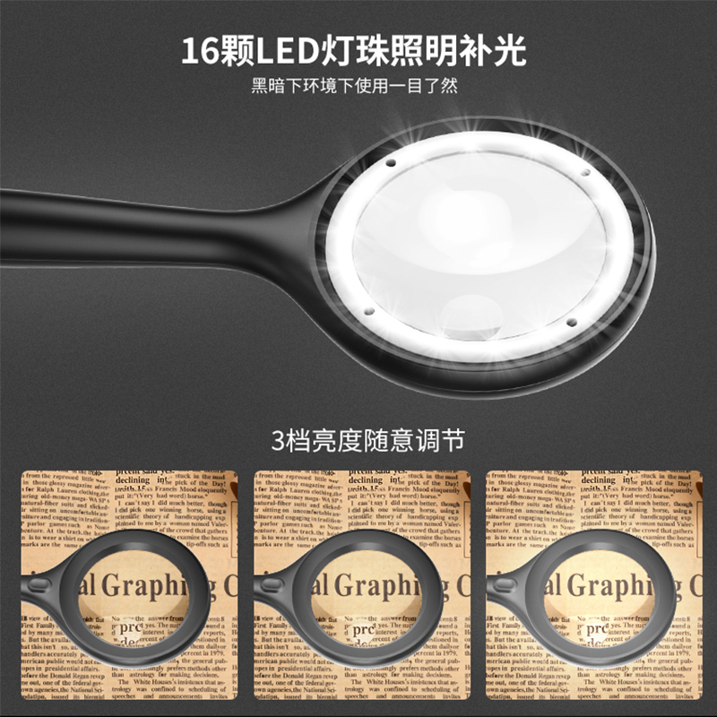 盖视 非球面放大镜30高清老人阅读老年用看书用的家用维修小学生儿童大镜面看报可充电光学手持扩大镜1004060